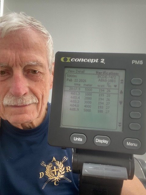 While the rest of the Club was lamenting the cancellation of Durham Small Boats Head on Saturday, Roger Stainforth was busy over the weekend competing at home in Durham in the heats of the 2026 World Rowing Virtual Indoor Championships.